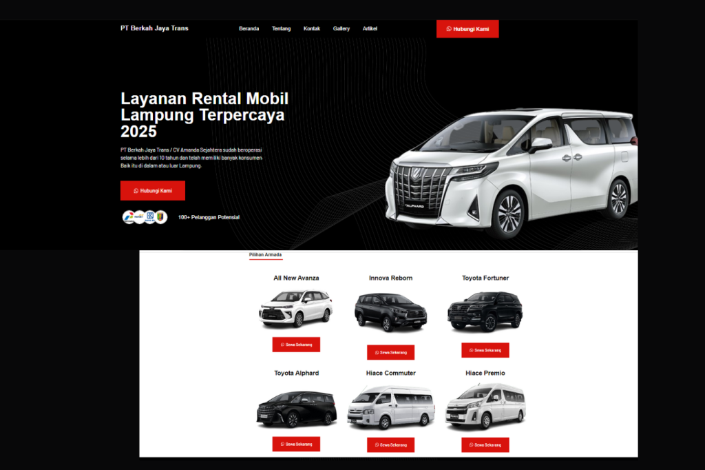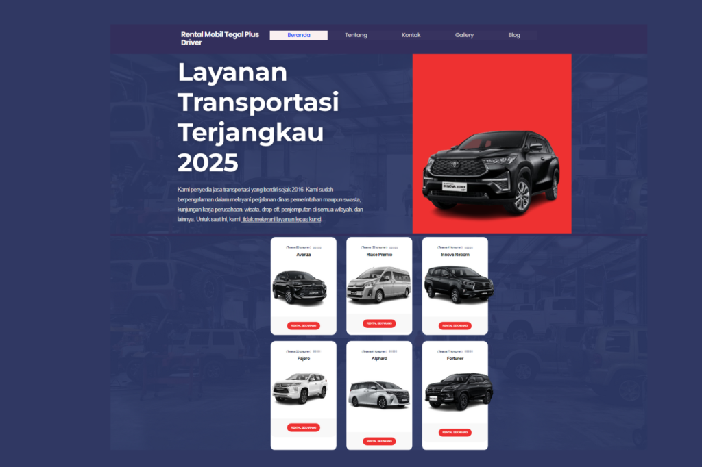 Web Design Rental Mobil Tegal